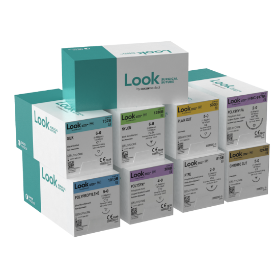 LOOK™ Nylon Black Monofilament Sutures (4-0) are designed for precise, reliable wound closure in dental and surgical procedures. Each suture measures 18 inches (45 cm) and comes with a 19mm reverse cutting needle (3/8 circle), packaged sterile in a box of 12.