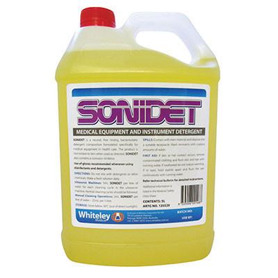 It is odourless, non-staining and is a safe for the removal of hospital and surgical soils. Diluted solutions of Sonidet are colourless. Its concentrated formula provides rapid cleaning action and effectiveness in hard and soft water.